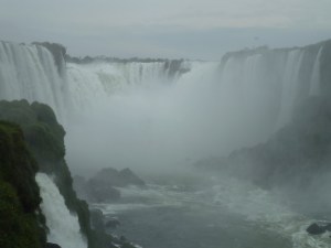We then took a little train up to the walkway to the Devil’s throat – the most impressive part of the falls. We couldn’t even see down to the bottom as the mist and spray were so huge. We could feel the spray on our skin, and I felt quite dizzy looking down into this. This waterfall was incredible and very hard to describe. We were lucky to be there on a sunny day, as it meant we could see rainbows in the water, which were beautiful. On a side note, Lonely Planet claims that apparently tour groups up until the early 1920’s used to go by rowboat up to the rapids…they stopped doing this after one rower lost control and the whole boat went over. Walking on a catwalk felt slightly safer!