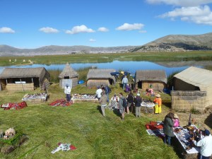 The floating islands are made of reeds and are home to the Uru people http://en.wikipedia.org/wiki/Uru_people . We arrived and were welcomed by the president of the island of Chumi, and then went on a reed boat tour. We then came back to the island and the president explained more about how the islands are made and maintained.We then had some time to explore Chumi – it was pretty tiny, as only about ten families lived on it!