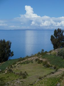 We took a bus alongside Lake Titicaca to cross the border into Peru, then took a mini bus from the border to  Puno. Puno isn’t as pretty as Copacabana and is much bigger – more a small city than a town.  Puno’s claim to fame is as the launching point for trips to the floating islands of Uros and to the other islands close to Puno.