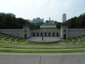 We arrived in Nashville, the home of country music. We decided to walk into town, and headed in via the Bicentennial Mall, which gave us a great view of the State Capitol.