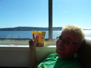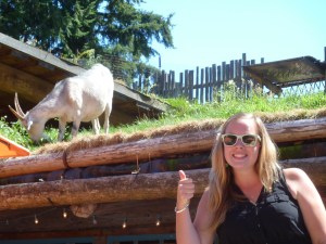 We decided to visit Vancouver Island for a night as Reuben’s cousin Hannah is working at Camp Qwanoes on the island.  Vancouver Island is a two hour ferry ride away from Vancouver, and is a huge place. Hannah picked us up from the ferry and we went to Coombes, a quirky little place whose claim to fame is having goats that live on the roof of the market.