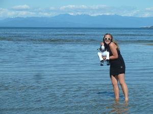 Lucky Piako, visiting Vancouver Island, and being helped to swim by Hannah.