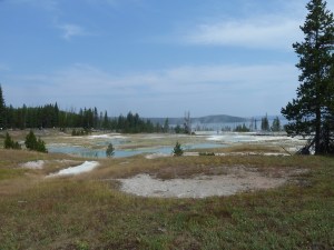 Our next stop was at the Old Faithful geyser where we joined the crowds and watched the geyser explode. We were lucky and only had to wait about twenty minutes for it to go off – it goes off about every hour and a half. After that we walked around the geyser area then headed to Black Sand Basin for a picnic lunch.