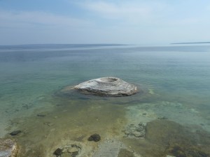 After that, we drove along Hayden Valley looking out for wildlife. Over the day we saw deer, lots of bison (some literally on the road) and Canadian Geese (sadly, no bears).  We stopped at the Sulphur Cauldron and Mud Volcano before camping overnight at Bridge Bay at Yellowstone Lake.  There were very strong warnings about bears there – we weren’t even allowed to take water bottles into our tent! We had our coldest night yet of tenting – it went down to about 5 degrees Celsius.