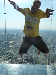 We strolled down to the lakeside and saw the huge fountain, then walked back to Willis Tower. This used to be the tallest building in the world and is now the tallest in North America – it used to be known as the Sears tower until quite recently. It had a fun glass box with glass walls and floors you could play in, and the views of Chicago were outstanding.