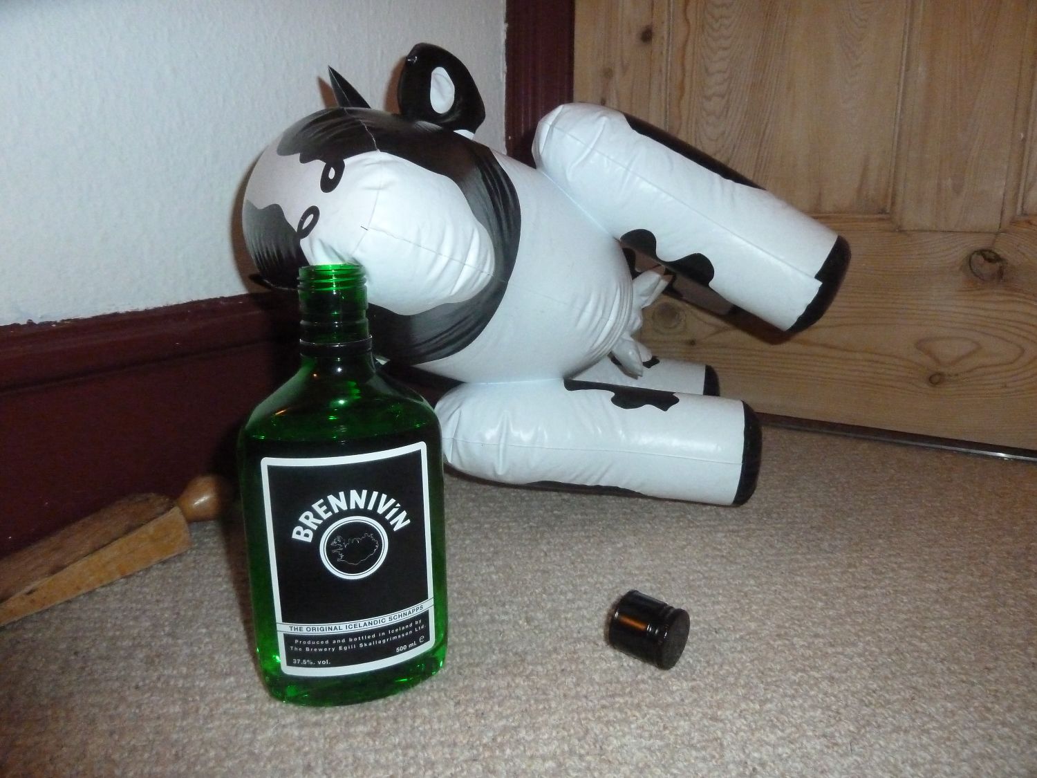 Piako was outraged that we left him in the car when we went to see all the beautiful things in Iceland. He managed his emotions by sampling the local alcohol, Brennivin!