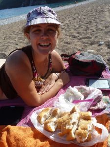 The Chimera is a group of natural flames on the slopes of Mt Olympos that come out of the hillside. It is pretty odd to see so many fires around. Luckily, we had come prepared with marshmallows, so we roasted ourselves up a snack. Unluckily Reubs managed to burn himself on hot marshmallow!