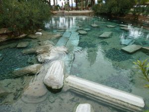 After our wanderings, we headed to the Ancient Pool. Apparently this pool was formed in an earthquake, and here you can swim in hot water around ruins of columns and stones that are in the water. It was a great way to relax!