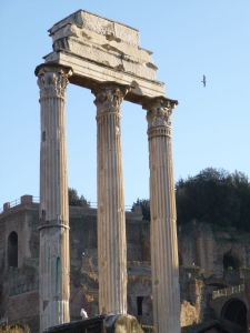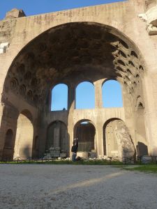 The Colosseum was beautiful but left us hungry, so after a quick lunch of an unappealing sandwich (lesson learned – make our own lunches!) we headed over to explore the beautiful Roman forum and Palatine hill.  We had lots of fun exploring these ruins in the middle of the modern city!