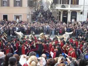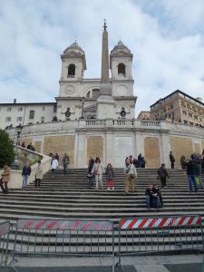 New Year’s Day is a big celebration in Italy, so we had been forewarned that most things wouldn’t be open.  We therefore planned a walking day, starting at the Spanish steps. These steps happened to be hosting a concert that we caught the end of before seeing the church at the top of the steps.  We also managed to dodge the annoying flower sellers. Now, I don’t mind people trying to make a living but these guys went way too far – pushing flowers into people’s hands and refusing to take them back, telling them that they were free then demanding money and getting into people’s faces so that they lost their balance and fell trying to get away from them (okay, that last one might just have been me!)