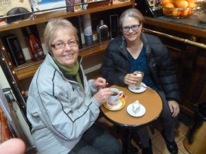 We grabbed a coffee at a local coffee bar and learned three important things – coffee in Italy is mostly drunken standing up in the shop, coffee with milk in it after morning time is really only for tourists and children, and tea drinkers are punished by paying more for a tea bag and hot water than for any kind of coffee! (Only Reubs really got it right with a short, sharp espresso).