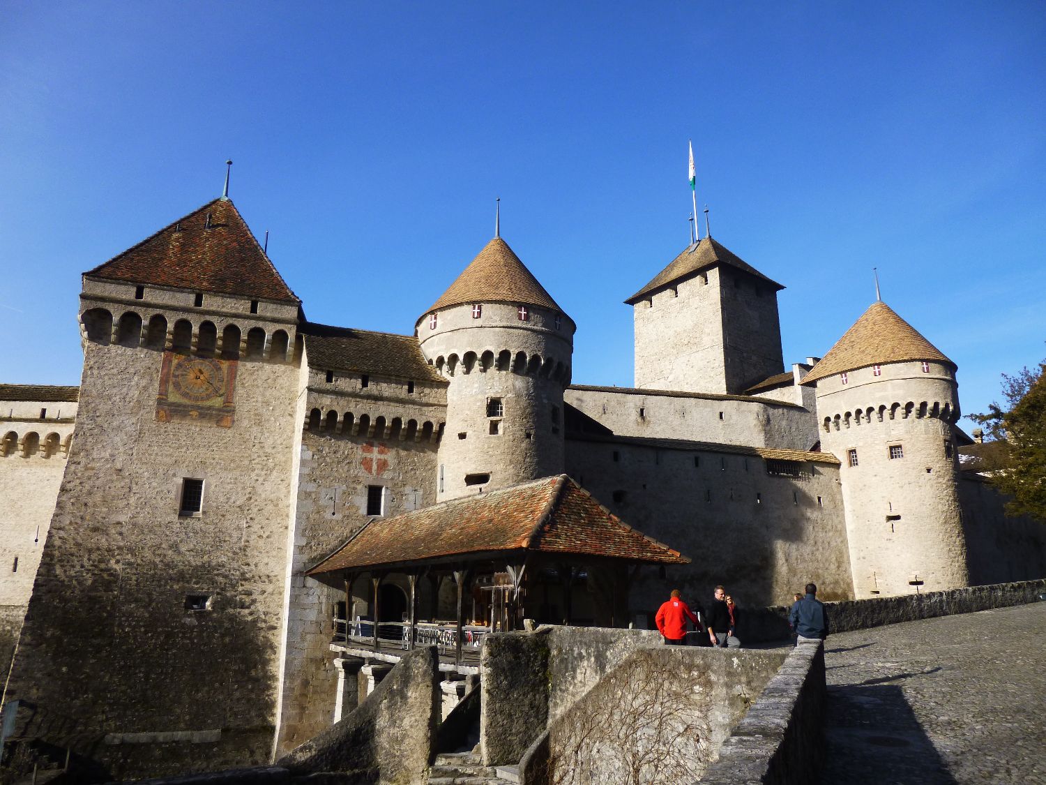 We took a train from Berne to French speaking Montreux and then took a bus to see the beautiful Chateau Chillon.  This castle is perched on the side of the lake, with mountains behind.  We did an audio tour through the large castle – this was really interesting and gave us lots of information.