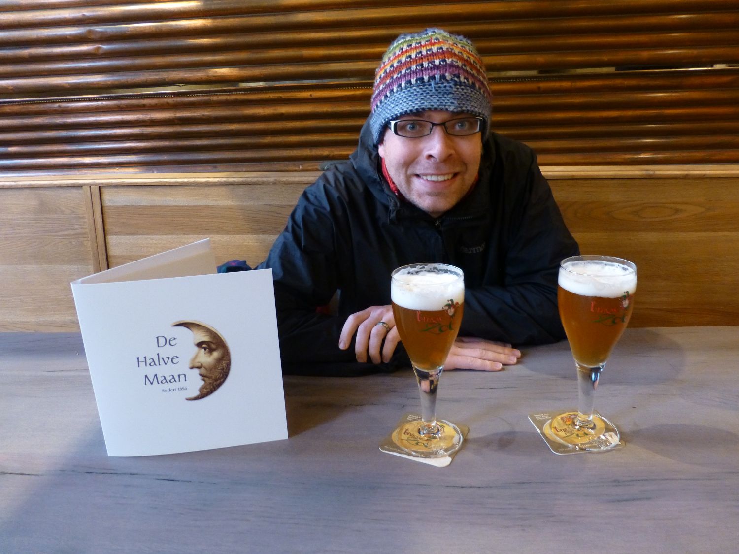 Belgian chips and Belgian beer had to follow that, so we had some chips and mayonnaise and then headed over to De Haalve Man, a family brewery where we tried the local speciality.   After that we strolled around to see Bruges lit up by night, which brought us a different perspective again.
