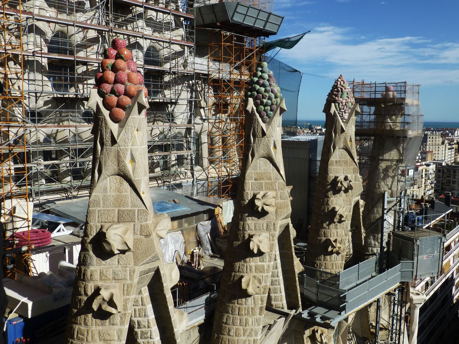 When we arrived we learned that we had a two hour wait until we could go up one of the towers. We thought that this would be way too much time, but by the time we had visited the museum, watched the video, explored the inside and the outsides and had a picnic the time had flown by. We took the lift up the tower and then walked down. It was fascinating to be in a church that is still under construction and to see the peculiar mix of Gothic and modern styles as well as the purely Gaudi-esque touches.