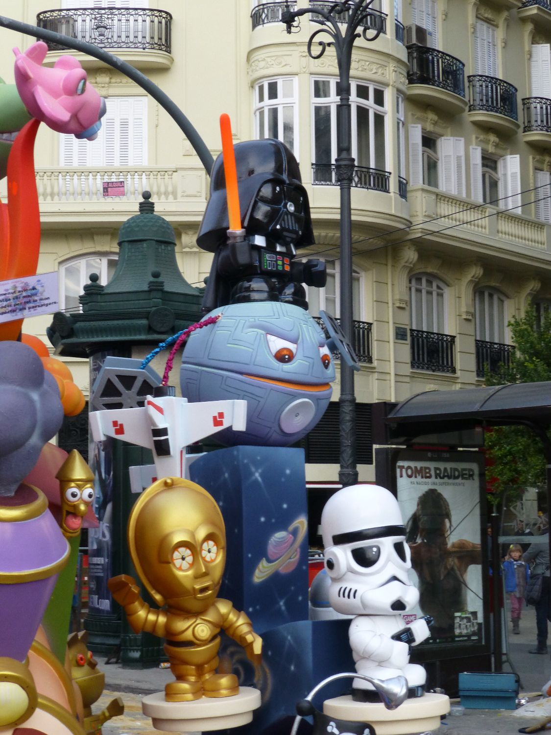 The true highlight of Las Fallas though is the ninots.  These are sculptures made of polystyrene, placed on every street corner. There are 11 “special” and 15 “primera” ones, which we made a point of trying to see as many of as possible.  These are massive and have lots of satirical political themes – we couldn’t understand the writing but some of the messages were pretty clear!  We loved seeing these – they are so artistic.