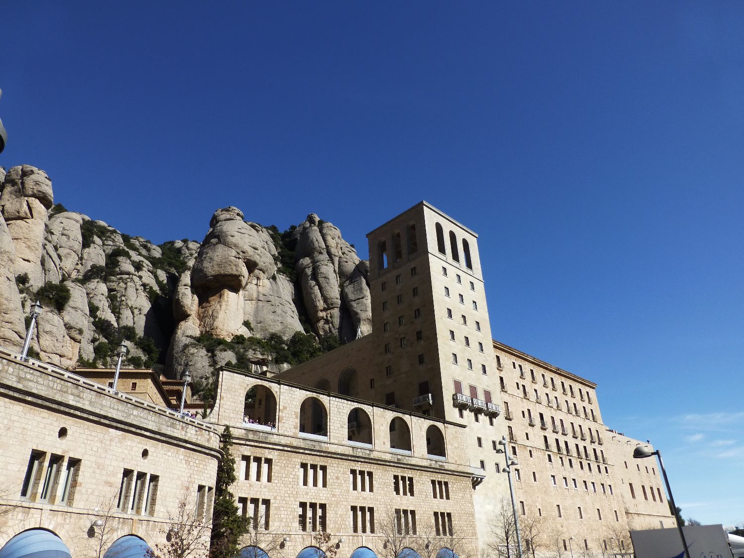 Montserrat is a monastery on a mountain outside of Barcelona, easily reached by train. A friend of mine had originally recommended this to us, and it is definitely a great day trip to do from Barcelona. Before getting on the train, we had to decide if we wanted tickets to go up the mountain by gondola or by smaller train – we thought that the cable car would be much more fun, so we chose that. The cable car took us up a very steep mountain to where the monastery and surrounding buildings were located.