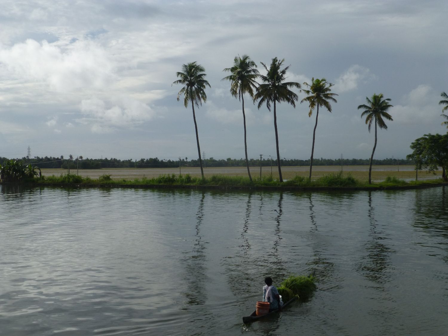 Our journey started the next day with an 11am check in, and then we were off sailing! We headed up a canal to a lake, then stopped for lunch in a small canal. Lunch was cooked for us by our chef – all we had to do was come down from the upper deck where we had been hiding from the rain and enjoy delicious fresh fish, rice, pappadums, veges and chutneys.  We then sailed again from 2-5pm, stopping alongside other boats for the night (with banana fritters and coffee on the way in case we were hungry).