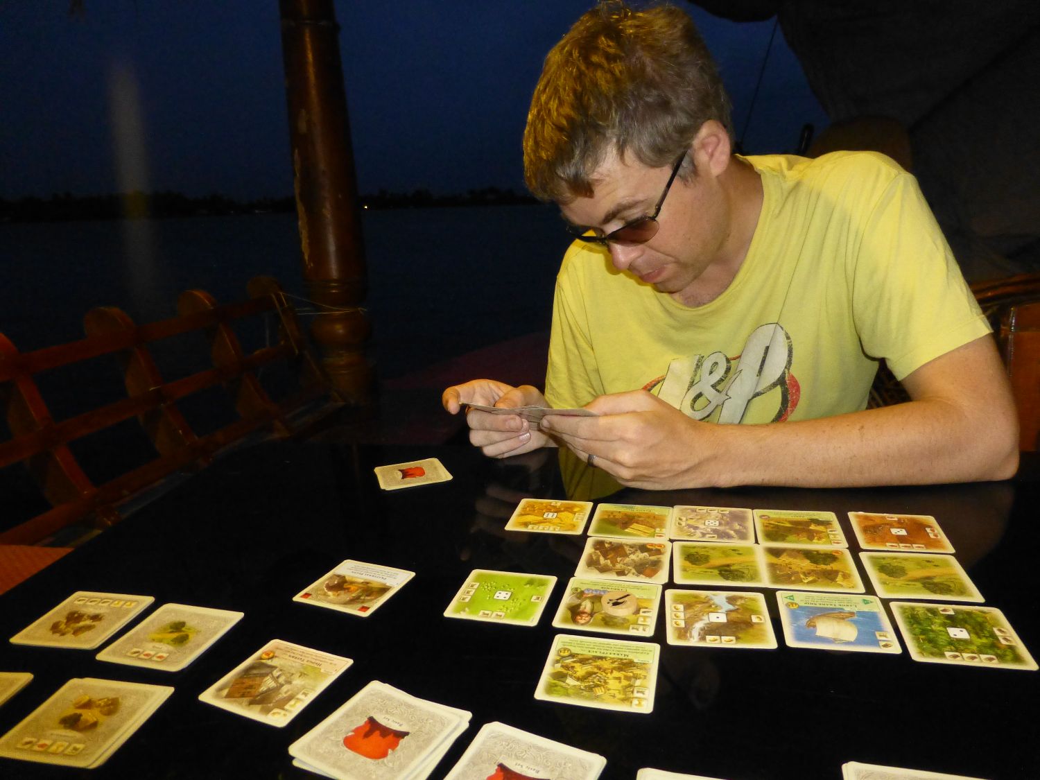 We decided to go for a walk – this turned quite freaky when I saw a long black snake on the path and screamed and ran backwards…the snake then took off towards Reuben instead. A local man told us it wasn’t poisonous and drove beside me on his scooter as I walked past it – but I was pretty jittery for the rest of the walk back and nearly wet myself when a frog jumped across the path in front of us.  By the time we got back and sat down and I realised that what was flying on and off the boat at top speed was in fact a bat I was not feeling kindly towards the wildlife!  A round of Settlers and some delicious dinner cheered me up a bit.